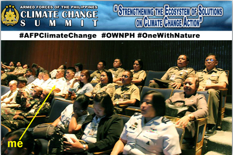 Now, I am worried! I cannot close my eyes and just pretend everything is fine and okay. Shall I bury my head in the sand and ignore the coming catastrophe? ASEC Dingdong Dantes III of National Youth Commission pointed out that we cannot stop it, we cannot change it, and we cannot escape from it. We can only minimize its harmful effects. BGEN FERMIN DE LEON AFP (Ret), current President of National Defense College of the Philippines (NDCP), summon everybody to "stop talking and start acting" on solutions to climate change. Ms. Gina Lopez-Roy of ABS-CBN Inc. and "Bantay Kalikasan", the darling of the crowd, has affected everybody in her dismay to the abuses done to our environment and even blamed Engr. Digna Pacis of the Department of Environment and Natural Resources (DENR) for allowing open-pit mining in the country which destroys our forest, to this she later apologize after realizing that she was barking up the wrong tree. What can I possibly do? Now that I've learned from the summit that our beloved country, the Philippines, is sitting in the pacific ring of fire, where a large number of earthquakes and volcanic eruptions occur. It is alarming to know that we are now next to Tonga and Vanuatu as the most vulnerable countries to the catastrophic effects of climate change. Experts told us that climate patterns has dramatically change the last few decades due to global warming caused by too much carbon emission to the atmosphere. Because of these, frequent and extreme weather conditions happen to many places causing havoc and damages to lives and properties. Our local authorities have attributed recent natural calamities such us "Ondoy" and "Yolanda" to this global warming. One speaker even said, "If the earth is an ice-cream, we are already melting."